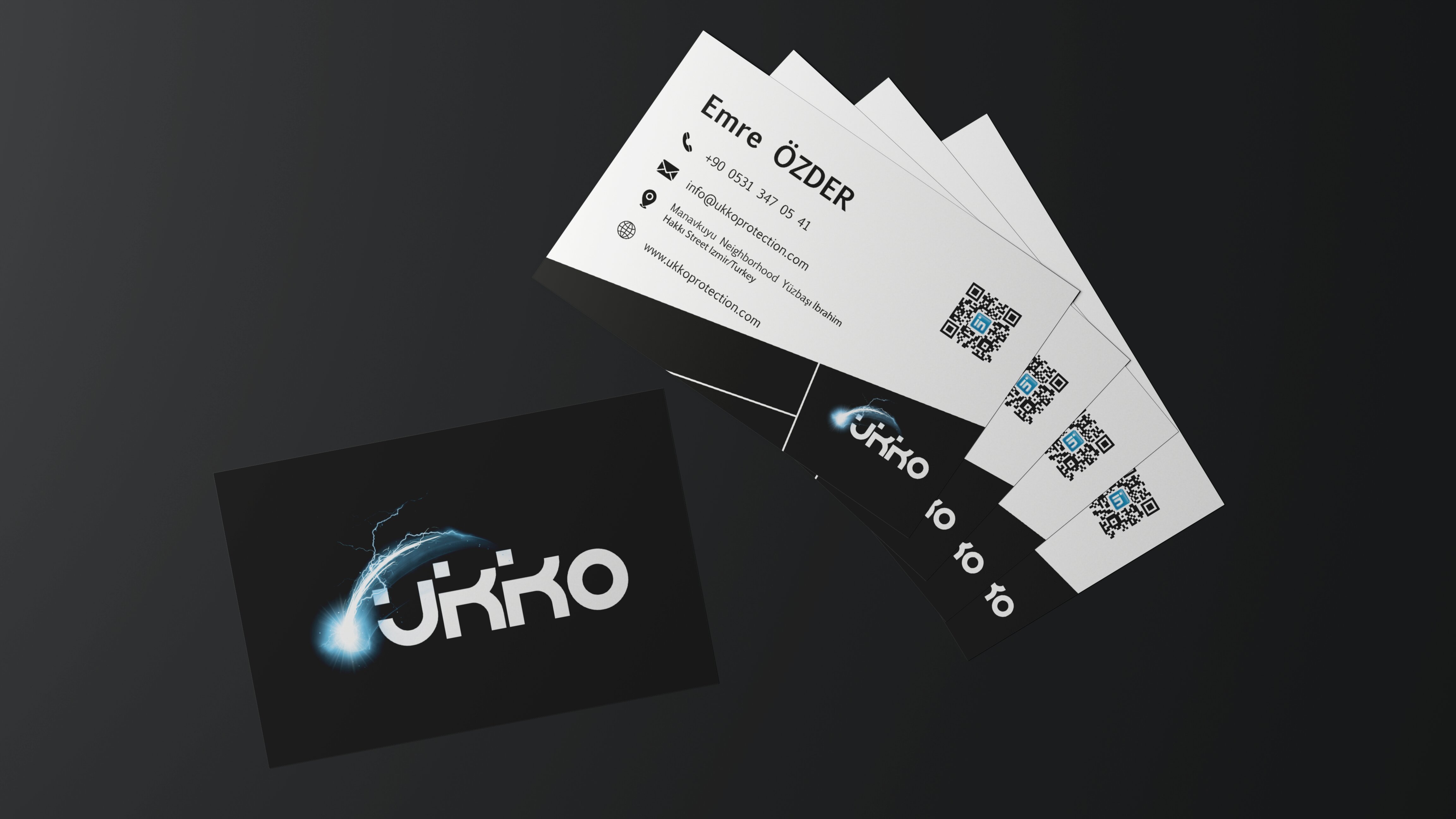UKKO markası için hazırlanan bu kartvizit tasarımında modern ve teknolojik bir görünüm hedeflenmiştir. Dinamik ışık efekti ile markanın yenilikçi yapısı vurgulanırken sade tipografi sayesinde kurumsal ve profesyonel bir kimlik oluşturulmuştur.